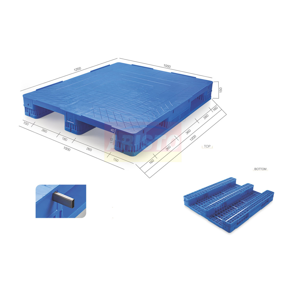 121015 CFT | 3 LEG PALLET 1200 X 1000 X 150 mm 1000 kgs 4500 kgs 800 kgs HDPE Yes Yes Yes